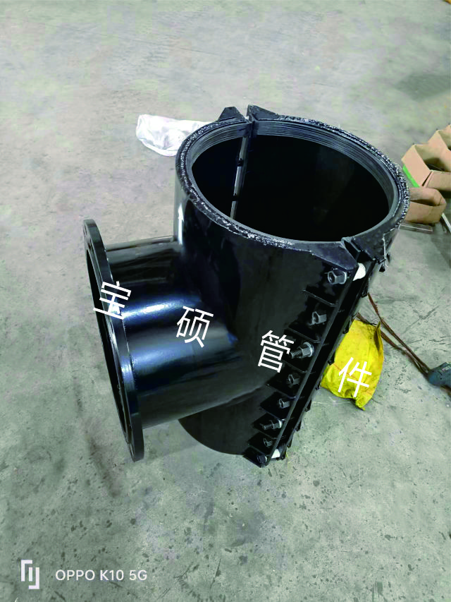 三通哈夫節,專門用于管道三通部位的搶修。管道通常材質有球墨管、鑄鐵管、鐵管、鍍鋅管、鋼管、PE管、PVC管等多種材質。而對于多種材質的管道出現砂眼、泄漏、斷裂等問題,既方便又節約成本的方法便是對管道進行搶修而不是重新換管道。