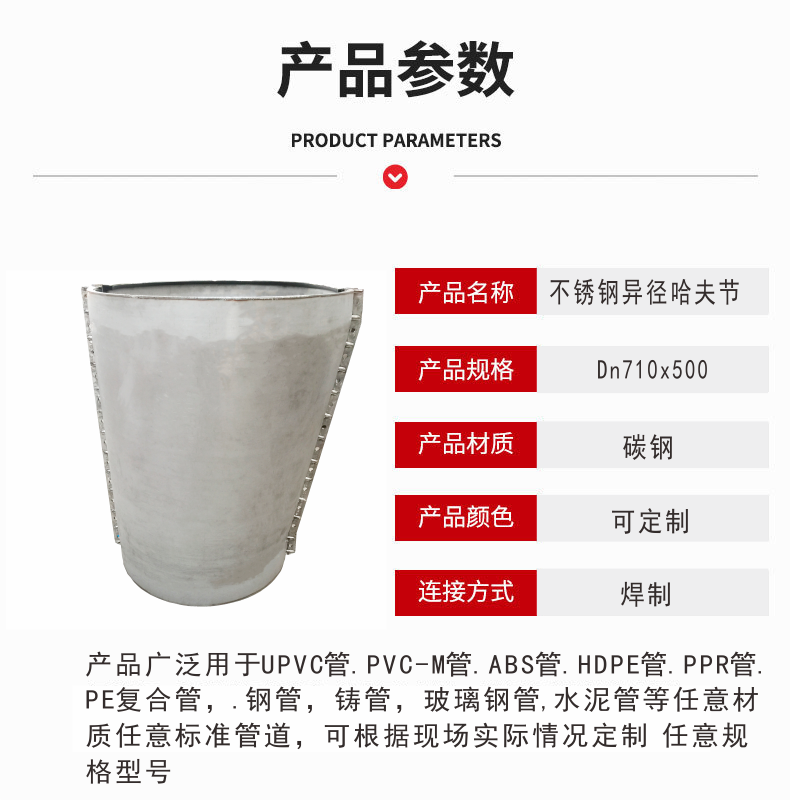 在管道系統(tǒng)中,異徑哈夫節(jié)是不銹鋼材料的一種重要配件。它具有輕便、易于安裝和拆卸的特點,同時也具備高度的密封性能和耐腐蝕性能。