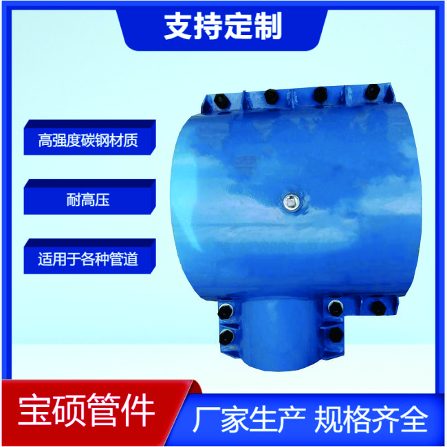 產品簡介:主要用于三通連接處漏水搶修。無需更換三通,直接把漏水的三通包起來,可實現不停水帶壓操作