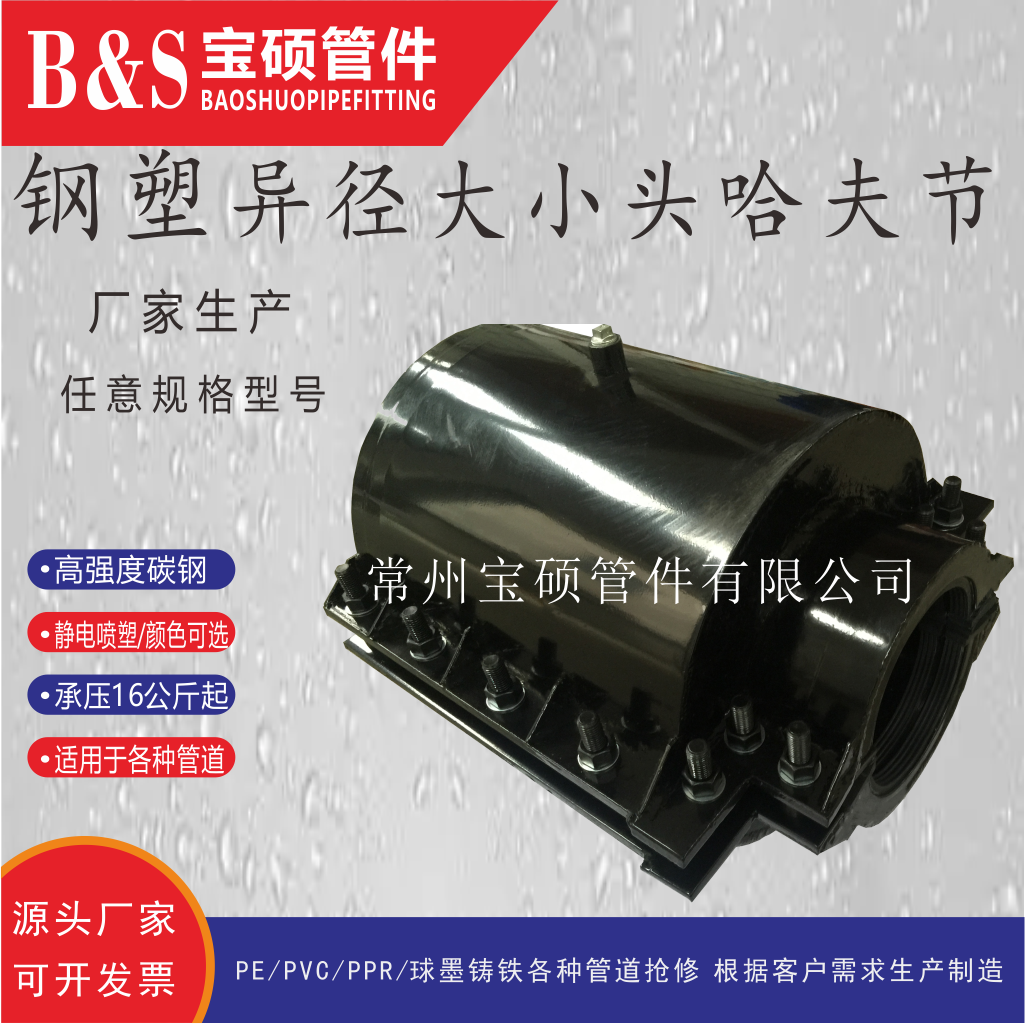 - 寶碩牌大小頭哈夫節(jié)是一種特殊的管道連接裝置,主要用于處理管道系統(tǒng)中不同管徑之間的連接問題