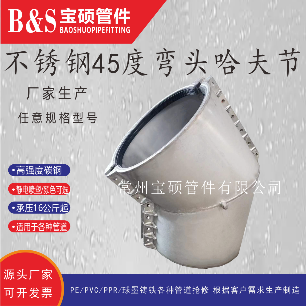 寶碩不銹鋼45°彎頭哈夫節