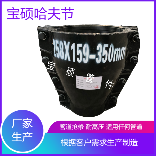 - 寶碩牌哈夫節(jié)分為直管哈夫節(jié),異徑哈夫節(jié),彎頭哈夫節(jié),三通哈夫節(jié)等一些常規(guī)的哈夫節(jié)應(yīng)用于常規(guī)管道的搶修
