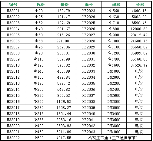 活接正三通價格及規格表